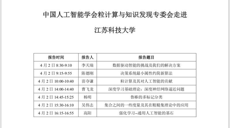 据悉,2019年中国粒计算与知识发现学术年会也将由我校承办,这将进一步加强我校与国内人工智能领域专家学者的交流,促进我校人工智能的建设与发展。