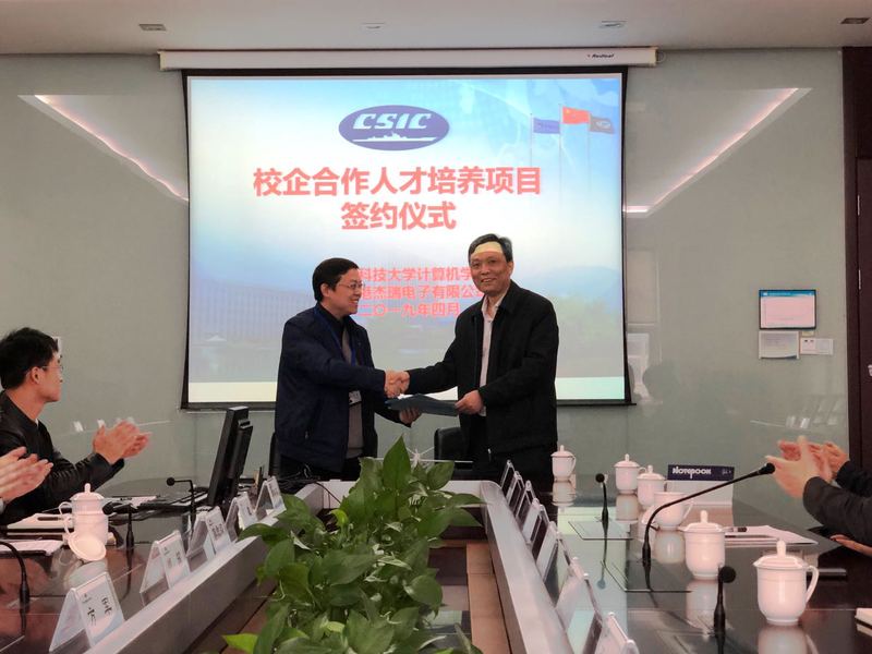 韩斌书记对七一六所以及杰瑞电子长期以来为计算机学院提供的支持与帮助表示由衷的感谢,并对研究所和公司多年来取得的突出成绩表示赞赏。韩斌书记介绍了学校近年的发展思路和方向,重点介绍了计算机学院近年来在人才培养、科研团队建设、学科发展、专业建设等方面的规划及成绩。他介绍,学院近期获批人工智能本科专业,是全国首批35家获批单位之一,充分显示了我院优秀的办学基础。学院将以此为契机,以国家船舶海洋发展、创新驱动发展和智能制造发展规划为指导,建成优秀的人工智能专业,为行业和区域输送优秀的信息人才。同时,他希望能与七一六所继续展开长期合作、深度对接,双方在人才培养、科技合作和专业建设等方面互送人才,全面开创合作共赢的局面。