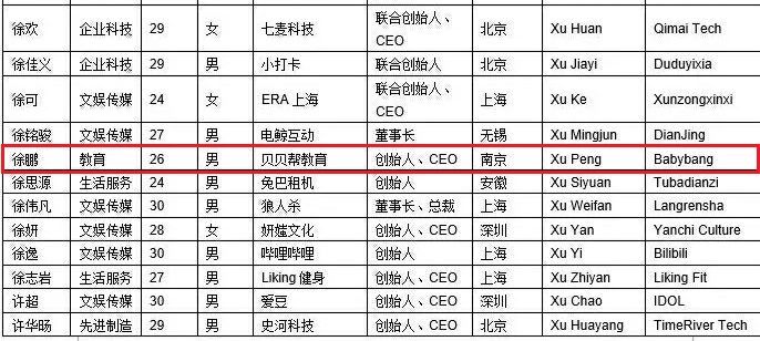 9月27日,致力于弘扬企业家精神的著名财经研究机构胡润百富发布《2019胡润Under30s创业领袖》(Hurun China Under 30s To Watch 2019),我院计算机科学与技术专业2016届毕业生徐鹏即贝贝帮教育创始人,荣登该榜!