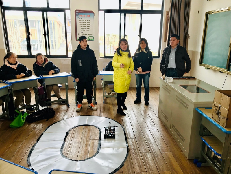 支部全体党员来到特教中心后,在特教中心老师的接待下,同志们来到初三年级聋九班,与十几名聋哑儿童通过特教老师的手语翻译进行交流。考虑到孩子们对科技知识的渴求和我校理工院校的背景,支部书记滕玮同志委托通信工程系系主任刘庆华同志携我校智能车协会的两名同学一起向孩子们介绍我校智能车协会的发展情况,近几年来代表学校比赛夺得好成绩的照片和比赛视频,还向孩子们现场演示了智能车进行赛道比赛的实况。刘庆华老师和两名同学的介绍与演示,让聋九班的孩子们对智能车产生了极大的兴趣,纷纷通过手语向老师和大学生哥哥们提问题,现场交流气氛非常热烈。