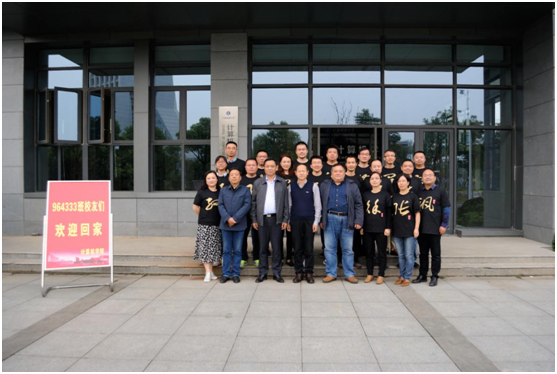 随后,在吴健康副书记的带领之下,校友们接着参观了如今崭新的计算机学院楼,与学院领导齐聚计算机学院328会议室,共话学院二十年的蓬勃发展。学院党委书记韩斌、院长高尚、党委副书记吴健康、关工委副主任刘镇出席了座谈会。韩书记致词表达学院对各位校友返校的热烈欢迎。高院长简要介绍学院的发展情况以及近几年取得的突出成绩。964333班的班主任吴小俊教授,现为江南大学科学研究院院长,也赶到现场,与在场校友们一同回忆了青葱岁月、少年意气,表示时隔二十年还能再次相聚母校实属不易,更关心他们如今的发展,继续像班主任一样地激励与“鞭策”。随后,刘镇教授是校友们当年的任课老师,也表达了自己以及学院对于各位校友的工作与生活的衷心祝愿。学院领导和老师表示会继续加强与校友们地密切联系,共同为计算机学院美好未来添砖加瓦。会议结束之后,学院领导和所有到来的校友在计算机学院楼前进行集体合照,每一个人脸上都洋溢着身为江科大人的骄傲和自豪。
