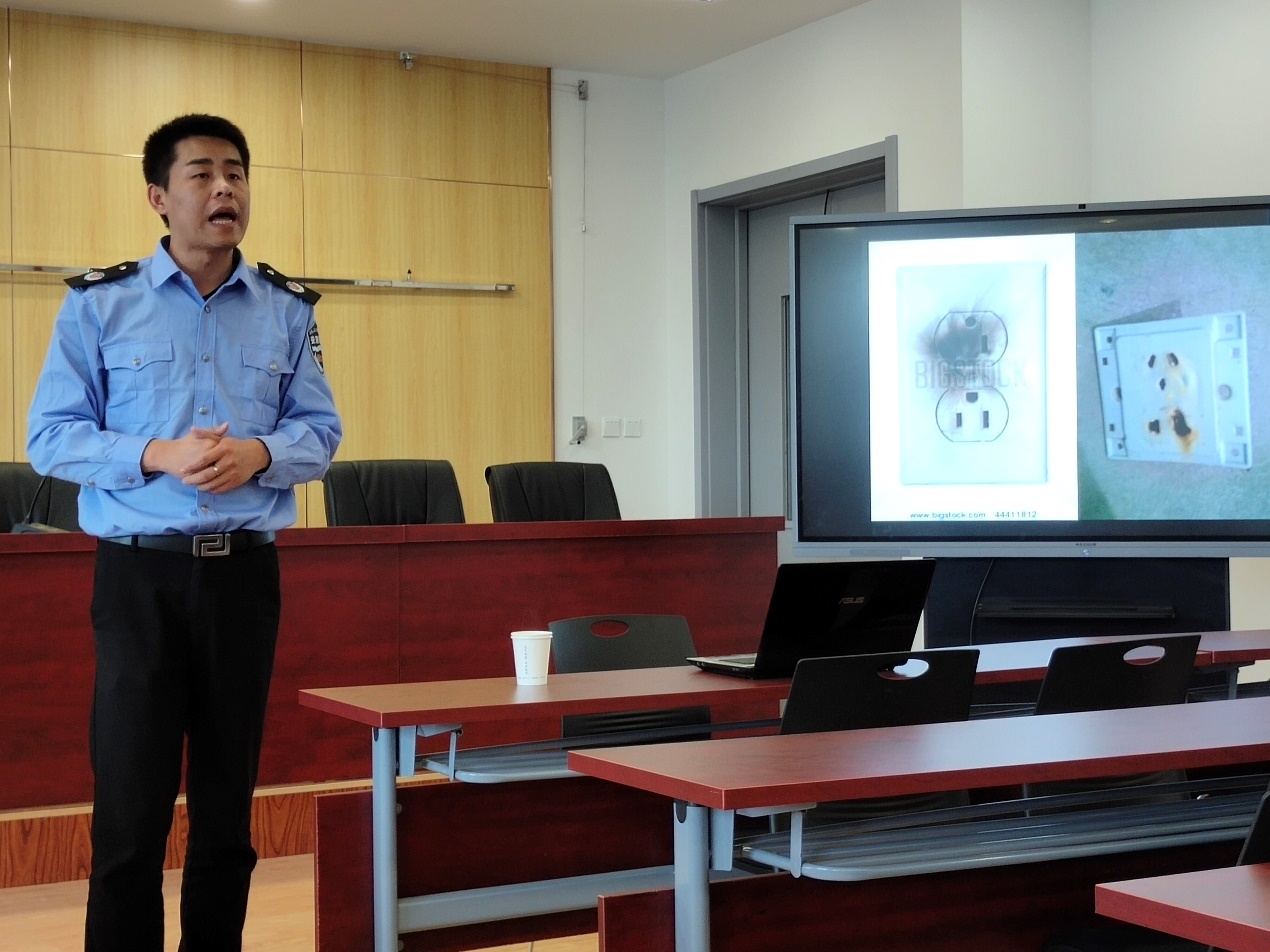 张教官曾在河南省某消防队担任了五年的消防员,具有丰富的防火经验。讲座中,他深入浅出地讲解了消防安全的重要性,全面介绍了在日常的学习生活中应注意的消防安全细节、如何扑救初期火灾以及火灾中如何自救、逃生等知识,并对消防器材的正确使用做了细致的讲解和演示。张教官结合自己在救火时遇到的真实案例,纠正大家在救火、逃生途中的一些“经典”误区。