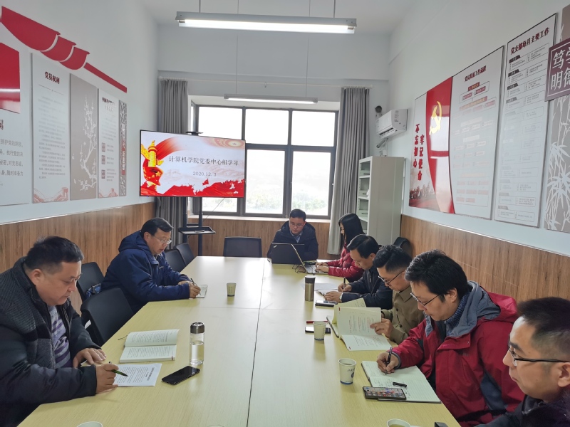 12月3日,计算机学院党委中心组开展深入学习习近平总书记关于教育的重要论述专题学习,校长周南平巡学旁听,学院全体党政领导班子成员参加学习。本次中心组学习由学院党委书记韩斌主持,院长高尚领学。