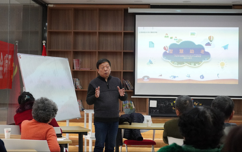 计算机学院刘镇教授,有着多年教书育人的经验,以通俗的语言和亲历的事件为例子,讲述了商场的变化和当今出行购票的便捷,用幽默的语言向老人们讲述着信息时代的变化与便捷,鼓励和启发他们对智“惠”生活的探索欲望,让讲座一下子生动了起来。
