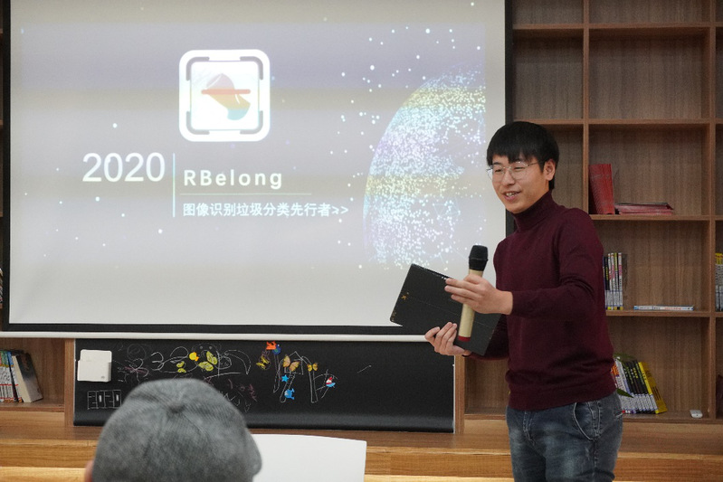 志愿者张东博向老人们展示计算机学院本科生创新创业特色项目——垃圾分类“RBlong”APP,帮助老人们理解:如何运用计算机技术,提供多元化分类服务,为环保行业注入AI能量,构建绿色生态圈,打造面向多应用场景的服务,使垃圾分类变为生活常态化。让不少老人们产生了浓厚的兴趣,纷纷表示愿意尝试,也让志愿者们倍感荣幸。