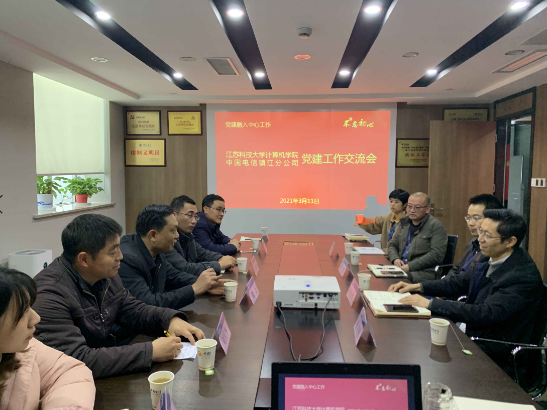 这次是计算机学院与中国电信镇江分公司首次开展的党建工作方面的交流。双方确定以计算机学院4个教工党支部与中国电信镇江分公司4个支部对口共建为基础,通过党史学习“联学”、支部品牌“同创”、技术人才资源“共享”等形式,开展党建工作共建。