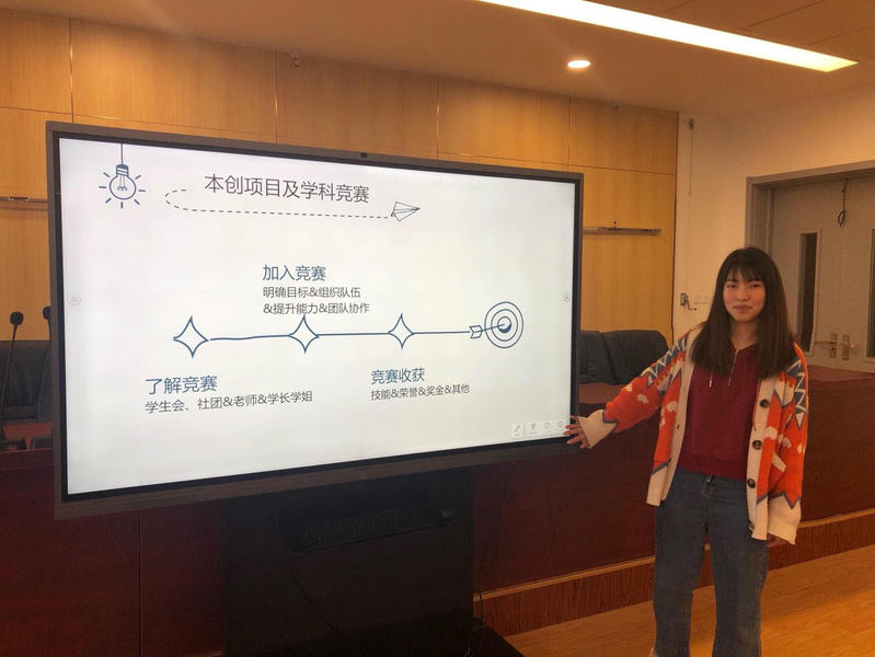 17级通信专业的陈群同学首先针对同学们课程内容多、学习难度大两大主要问题,以自身“三轮复习法”为例,倡导各位同学找准适合自己的学习方法高效学习,同时推荐“抄写”式复习。其次针对大部分同学口中,“想参加竞赛”但没有渠道或消息等问题,从了解竞赛、参加竞赛以及竞赛收获三个方面带领同学们更深入地明白如何去入手、加入等。