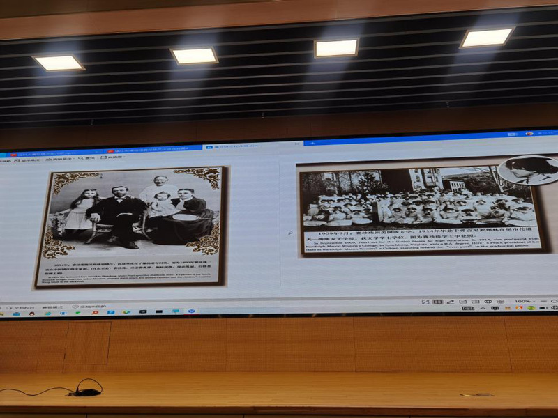 最后,徐宿浒老师向同学们阐述了对赛珍珠进行研究的重要性,结合当前的中美关系,简单介绍了镇江市博物馆正在推进的关于赛珍珠文化研究课题:多元数据视角下的中国赛珍珠文化主题演化分析,强调了文化交融是消弭国家矛盾,促进社会和谐的重要途径,培养了同学们的大局观和国际视角。