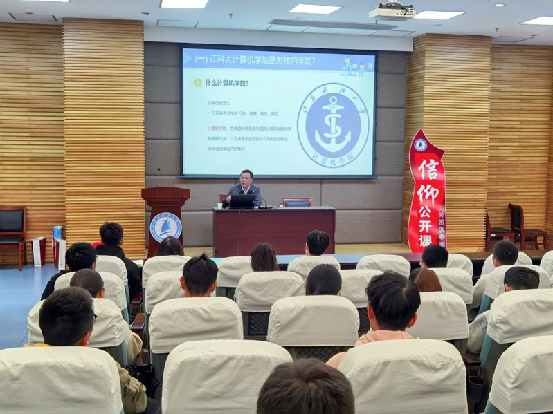 韩书记讲述了学校、学院的发展史,介绍了一批遍布在全国各地的优秀校友,这一群人正是江科大“船魂精神”的代表人物。2021年是计算机学院成立的四十周年,他对在座的青年学生们寄予了深厚期待,希望他们奋发图强,绽放出江科大计算机学子们独特的风采。对于学生党员干部的初心使命、责任担当,韩斌老师进一步做出了明确要求:当代青年担任学生干部应该是为了能更好、更全面的得到锻炼,有更多的成长机会。要辩证看待十五发展,树立正确的人生观、价值观。正是有着一个个努力前行的老师和学生,计算机学院自成立四十年来形成了优秀独特的精神文化品牌,有着一万多名杰出校友,更积累了丰富的办学、社会资源,正在努力成为江科大最优秀的学院之一。