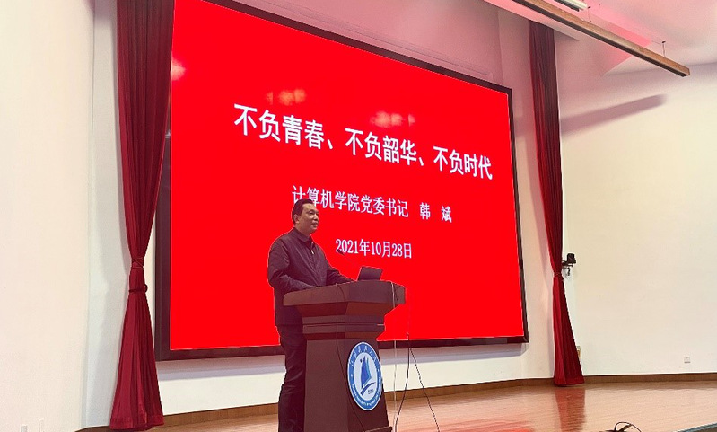活动伊始,计算机学院党委书记韩斌老师为新生们开讲“新生第一课”。“希望同学们不负青春、不负韶华、不负时代,珍惜时光好好学习,掌握知识本领,树立正确的世界观、人生观、价值观,系好人生第一粒扣子,走好人生道路,为实现中华民族伟大复兴贡献聪明才智。”他引用了习近平总书记的一句话,借此表达对计算机学子在未来能充分实现自身抱负的殷切期望,鼓励同学们坚定理想信念,投身到祖国的建设当中。