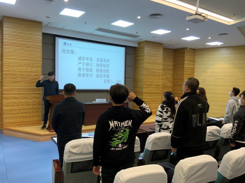 活动开始,学院研究生代表沈宏杰同学带领21级研究生一同学习研究生学术规范相关背景、学术不端典型案例、学术失信原因和诚信考试要求等,介绍考试作弊、学术不端会产生的严重后果。随后计算机学院党委副书记吴健康老师做总结发言,强调考场纪律和学术规范要求,结合学院最新的“双表制”考核与评价办法,要求广大研究生坚守学术诚信、完善学术人格,自觉抵制学术不端行为,勇担时代重任,做诚实笃信的典范;同时就近期疫情防控工作作了相关说明,强调了疫情防控的重要性,希望广大研究生认真遵守学校关于疫情防控的规章制度。最后,学院研究生一同宣誓,诚实守信,求真务实,自觉遵守科学道德与学术规范,不断提高自身的学术水平,为学院的学术发展添砖加瓦。