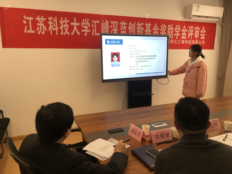 11月11日下午,江苏科技大学“汇峰深蓝创新基金专项奖助学金”评选活动在计算机学院会议室顺利举行。校关工委老领导李银老师、汪电明老师,学院关工委副主任刘镇老师,江苏科大汇峰科技有限公司总经理郭昌言,学院实验室主任刘从军担任本次活动的评委,学院党委副书记吴健康主持活动。