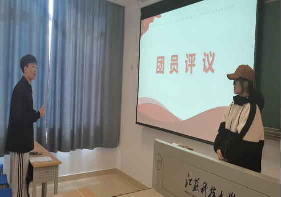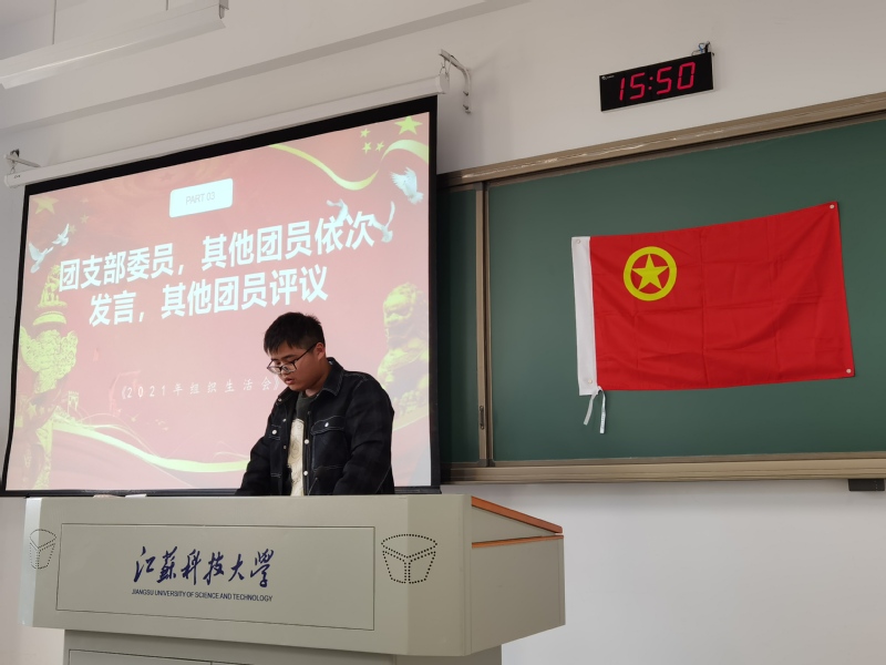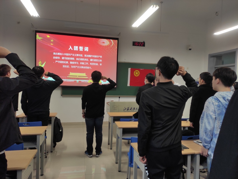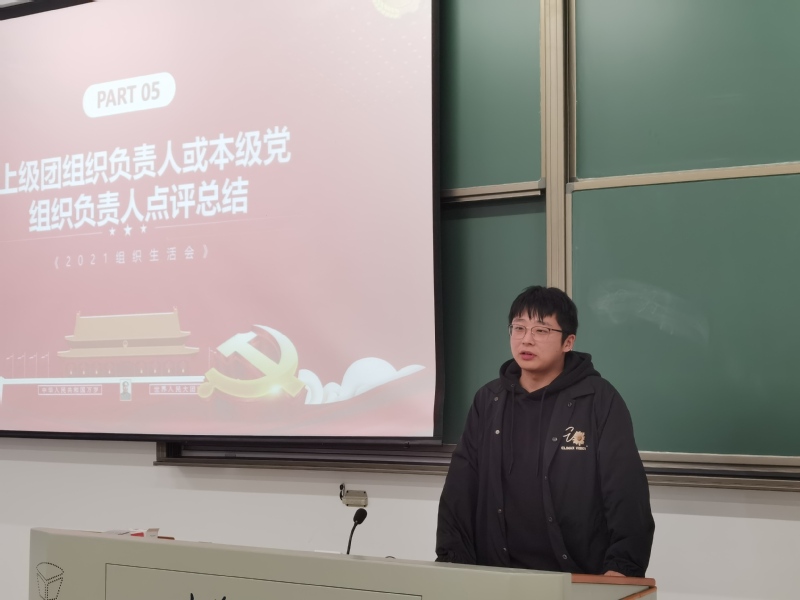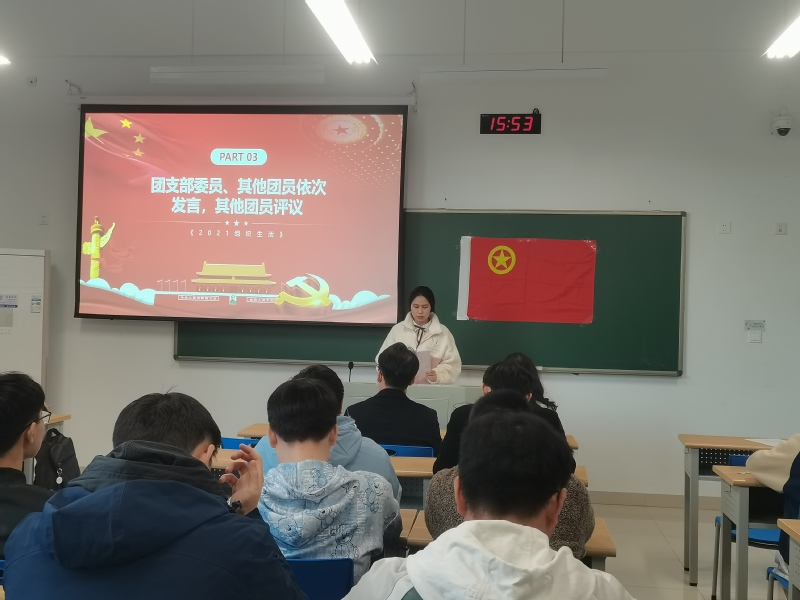 组织生活会按照六个环节进行,分别是全体唱团歌、团支部书记汇报团支部今年开展党史学习的情况、团支部委员、其他团员依次发言,其他团员评议、开展团员先进性评价民主测评投票、上级团组织负责人或本级党组织负责人点评讲话、重温入团誓词。张老师和崔老师分别点评了本次组织生活会的规范流程与效果意义,明确了下一步“学党史、强信念、跟党走”活动的规划。在庄重的活动氛围地鼓舞下,支部同学重温入团誓词,更加坚定自己未来的奋斗目标。
