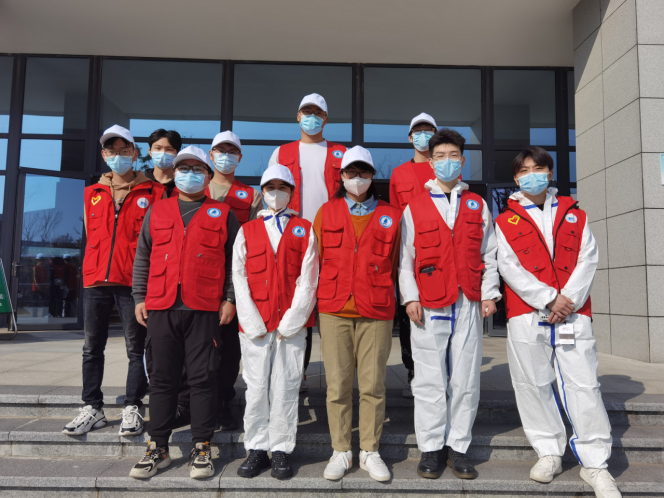 由学生组成的疫情防控志愿者配合完成全校师生核酸检测,食堂秩序维护,保障校园疫情防控工作平稳有序推进。