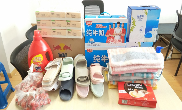 2022年3月14日,计算机学院党委、院办及工会线上远程慰问长山校区一线学工人员,为“抗疫战士”送去了牛奶、水果、面包以及日常生活用品等物资。对他们坚守在疫情防控一线表示衷心的感谢,同时叮嘱大家要做好自我防护,确保健康平安。学工人员们表示非常感谢学院的慰问,今后将更加努力地做好疫情防控工作,做到守土有责、守土尽责,坚决打赢疫情防控阻击战。