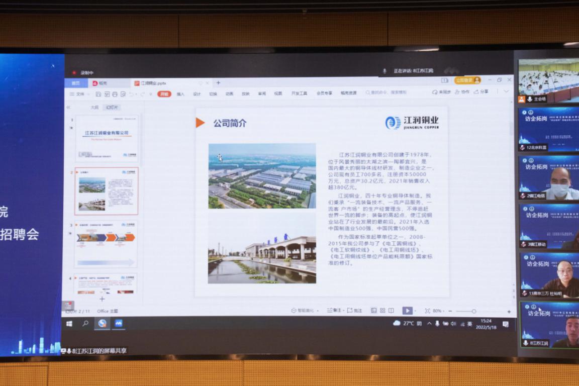 会议共两个阶段(线上校企对接会和招聘会),由汤校长主持校企对接会。
