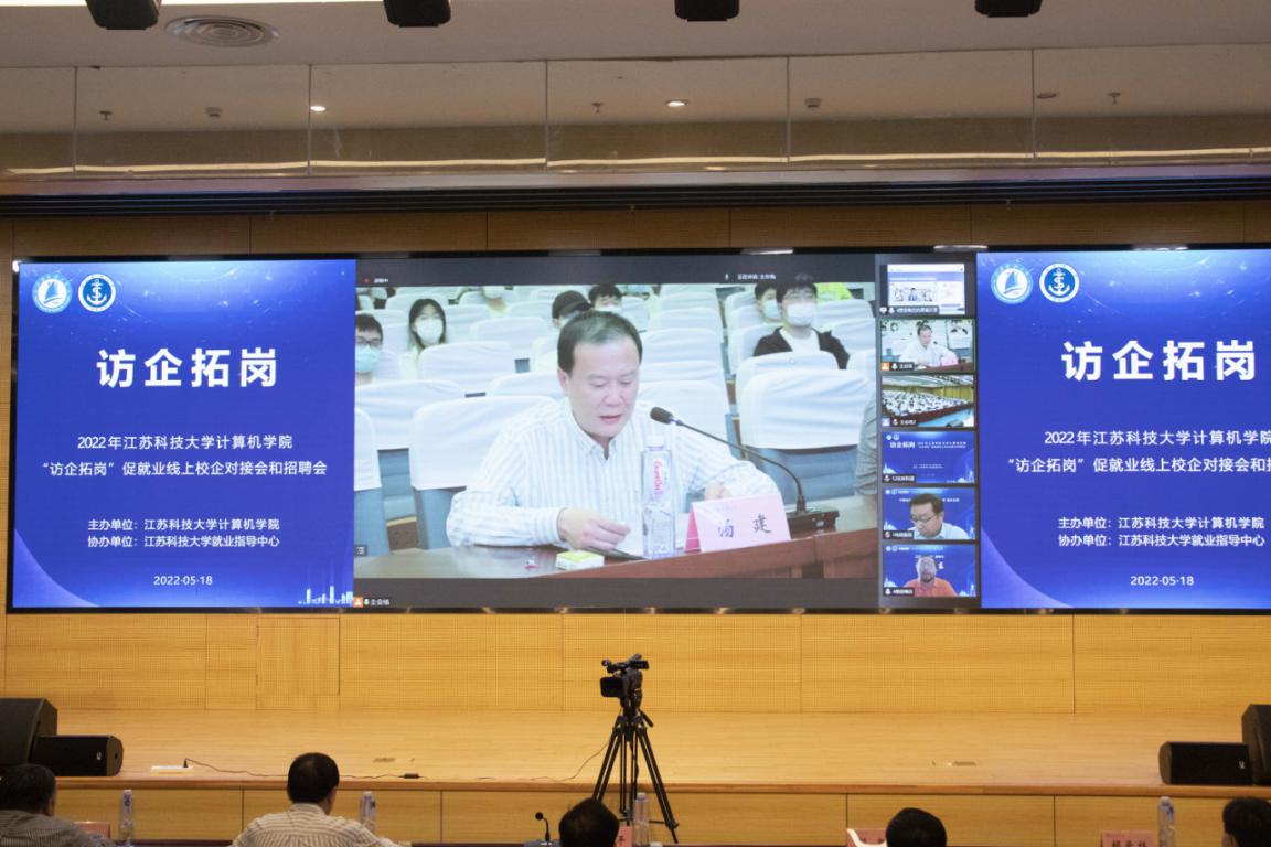 江苏科技大学校党委副书记、校长周南平,校党委常委、副校长汤建,学生处处长胡爱祥,研工部部长祁凯,计算机学院党委书记韩斌,计算机学院院长高尚,计算机学院党委副书记吴健康,学生处副处长范磊,学生处就业指导中心主任唐亮出席了本次会议。学院邀请了中国电信股份有限公司镇江分公司、中国移动通信集团镇江分公司、江苏赞奇科技股份有限公司、远东控股集团有限公司、南京三万物联网科技有限公司等十家用人单位。
