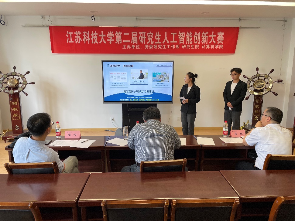 2022年5月27日,江苏科技大学第二届研究生人工智能创新大赛于计算机学院成功举办。本次大赛由党委研究生工作部主办,由计算机学院承办,大赛分为技术创新与应用创意两个类别,报名参赛队伍来自全校各个学院,共有32支队伍,100多名选手参赛。江苏科技大学党委研究生工作部部长祁凯,江苏科技大学研究生院副院长、党委研究生工作部副部长梅岭,计算机学院院长高尚,副院长史金龙、副院长杨习贝及张明副教授担任本次大赛的评委。