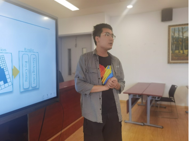 图为诸皓伟同学在进行活动分享