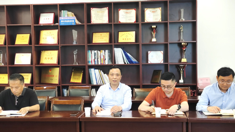 韩斌书记代表学院对校工会莅临指导工作表示热烈欢迎,并就校工会近年对学院工作的大力支持致以诚挚的感谢。黄士新主席代表学院从组织机构、职工小家、二级教代会、活动开展、经费管理、工会干部培养、职工维权、教职工慰问等方面做了工作汇报。