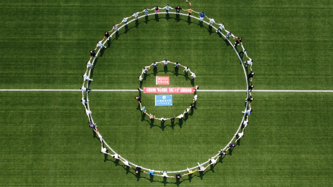 欢声笑语中,大家齐心协力,共打同心鼓。队员们团队合作,手持鼓绳,一同合作颠球。欢声笑语中,大家齐心协力,共打同心鼓。