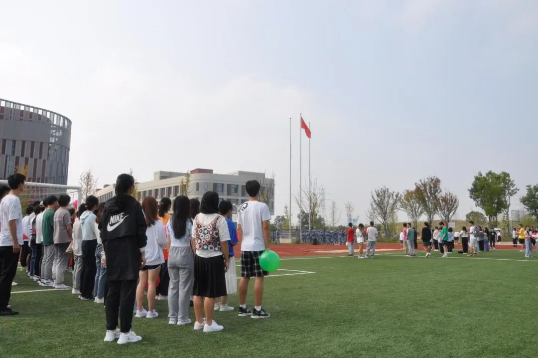 升国旗仪式结束后,同学们已经打破初识的陌生感,积极在西操场开展“同心庆国庆,喜迎党的二十大”主题素拓活动。