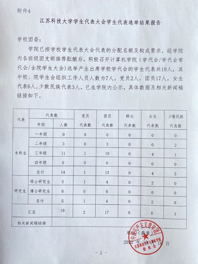 江苏科技大学学生代表大会计算机学院学生代表选举结果公示