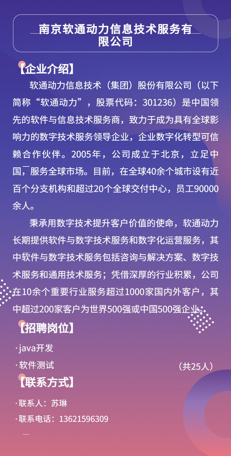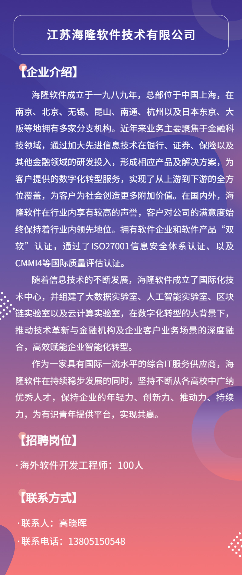 “爱英之旅”2022-2023年江苏重点软件企业全国校园行,江苏科技大学站诚邀您于10月21日14:00到江苏科技大学长山校区图书馆309参加南京壹进制信息,南京联迪信息,南京软通动力等多家重点软件企业(具体企业明细如下)带着offer等您来!