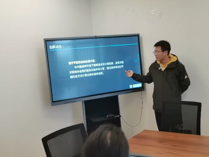 推进会开始,由钱强老师指导的《基于单视图位姿估计的物流行业多类物体分拣系统》项目团队进行展示。冯兵同学就其团队作品实现的技术路径进行了深入介绍。
