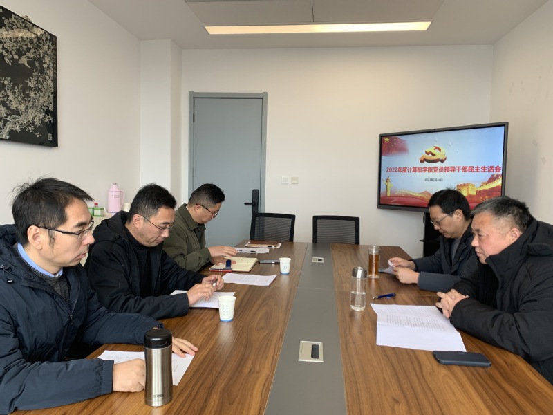 2023年2月24日上午,计算机学院党委以全面贯彻习近平新时代中国特色社会主义思想,深刻领悟“两个确立”的决定性意义,增强“四个意识”、坚定“四个自信”、做到“两个维护”,团结带领党员干部群众以奋发有为的精神贯彻落实党的二十大作出的重大决策部署为主题,召开2022年度处级以上领导干部民主生活会。会议由党委书记高尚同志主持。学院五位班子成员紧紧围绕主题,认真检视问题、开展批评与自我批评,会议取得实效。