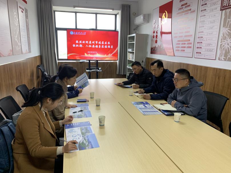 为深入推进校地企合作,促进江苏科技大学毕业生高质量就业,3月7日,苏州市姑苏区委组织部、人社局顾敏莎一行莅临计算机学院,对学院就业工作进行调研,并就人才招聘和输送等问题进行深入交流讨论。校就业指导中心尚静处长、学院党委副书记吴健康、软件工程系主任束鑫、就业辅导员陆鑫参加会议,会议由吴健康主持。