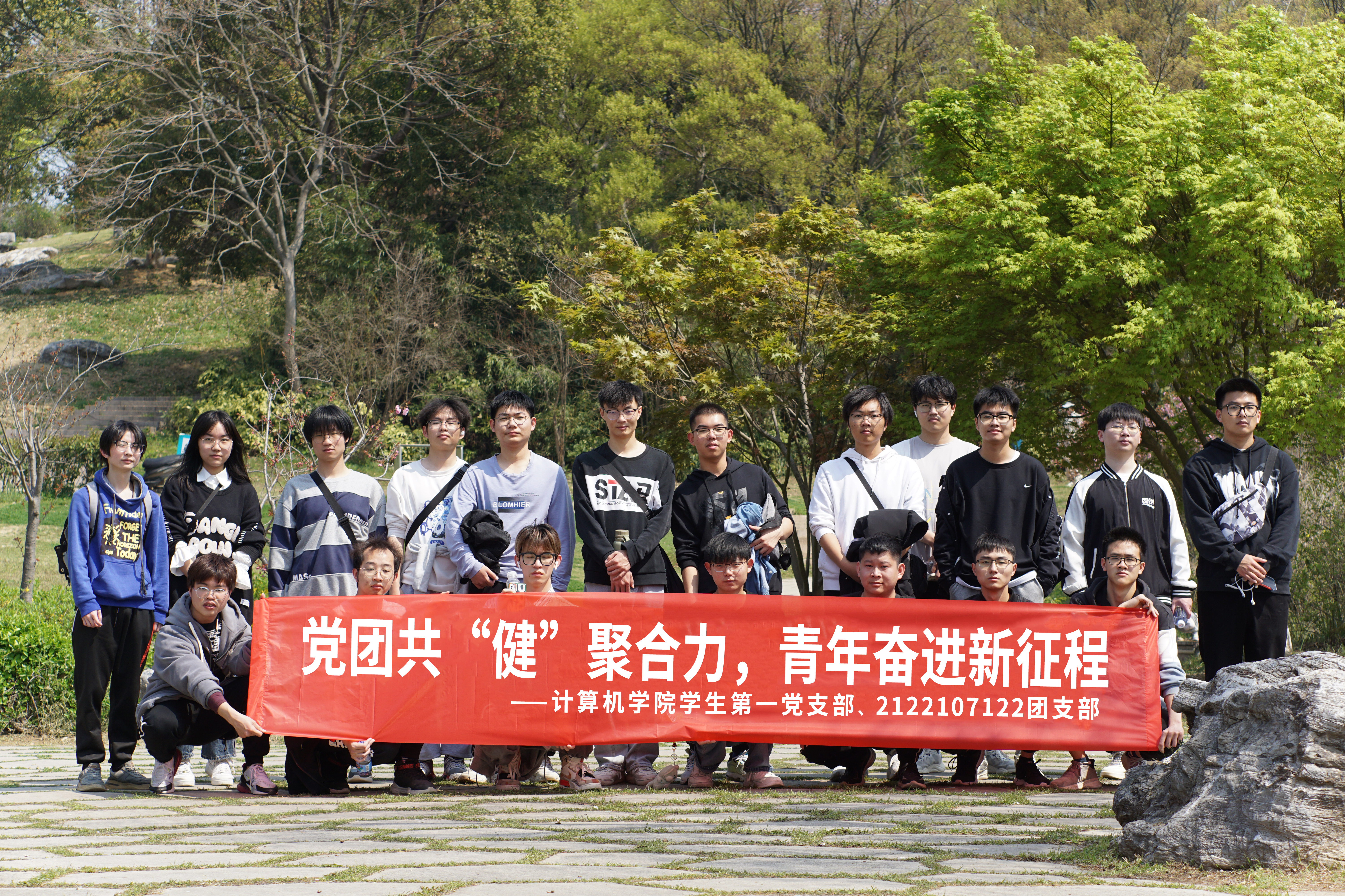 为进一步贯彻落实习近平总书记关于青年工作的重要思想,加强党对青年工作的领导,充分发挥“党建带团建”的引领作用,促进党团交流,4月2日,计算机学院学生第一党支部联合2122107122团支部在南山共同举办了“党团共‘健’聚合力,青年奋进新征程”活动。本次活动共由11名党员和预备党员、14名团员参加。