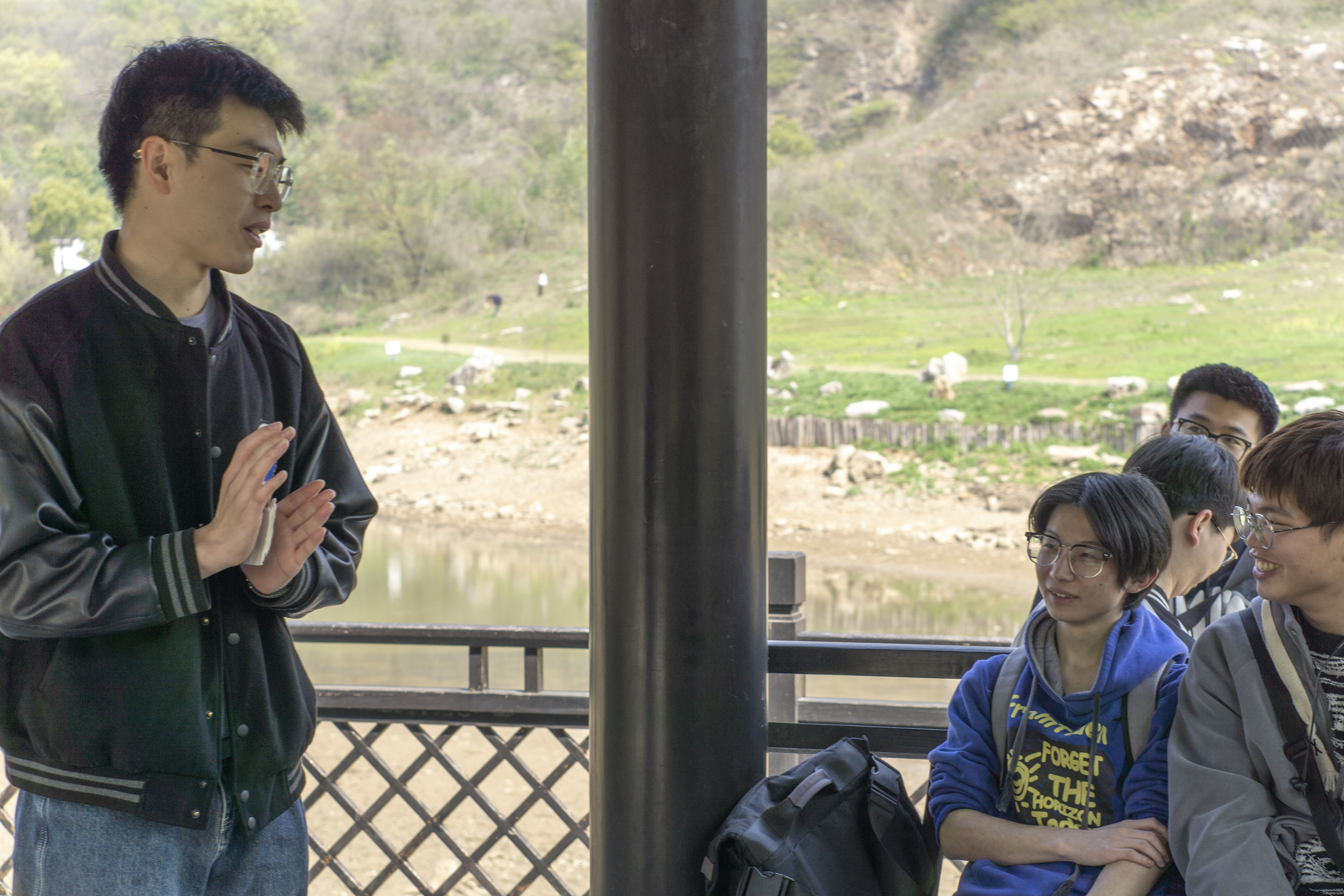 在攀登南山栈道和游览山水美景的过程中,支部同志和团支部学生就专业学习和生涯规划等方面进行了交流,加深了同学们之间的情谊。在游览途中,同学们在一个竹亭歇脚,刘玮同志就如何理解“过不了互联网这一关,就过不了长期执政这一关?”这一话题带领大家展开讨论。这是新的历史背景下总书记反复强调的论断,显示出了互联网对党长期执政的重要性。作为计算机学院的学生,同学们更能感受到互联网所带来的变革。大家广泛而深刻地讨论了这个话题,从网络舆论到科技革命,从发展现状到未来展望,都与生活息息相关。刘玮同志以人类历次科技革命所带来的变革为结尾,呼吁同学们关注前沿技术,善用科技资源,加强自身建设,共同营造良好的网络环境。