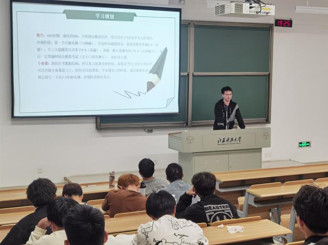 石宁,拟录取于江苏科技大学,攻读水声工程专业的学硕学位。石宁主要分享的是各个科目如何去学习,她把每一科目学什么、在哪学以及怎样学讲的细致入微,在场的同学们都收获满满。