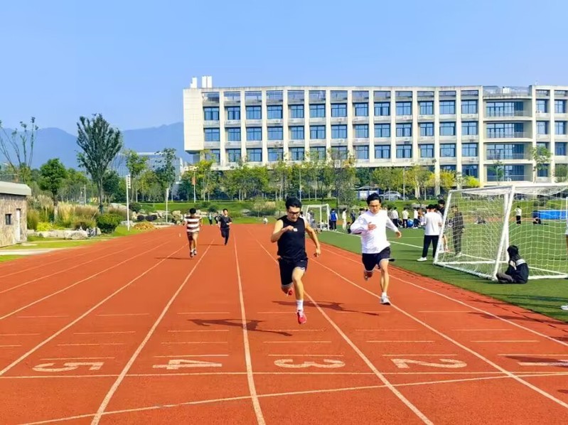 在100米长直道起点,参赛选手全神贯注、蓄势待发,一声令下,闪电般的瞬间,选手们在赛道上奋力飞驰,汗水飞溅。短暂的十余秒,他们点燃了校园体育热情,让人为之喝彩。