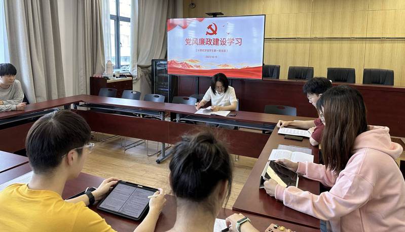 10月19日,学院各党支部开展了廉政文化学习和教育专题活动。其中,学生第三党支部支部书记陆鑫老师在党支部讲授了题为“争取新时代廉洁从政的表率”的专题党课;研究生第二党支部观摩了央视《清廉中国·微视频》系列节目。实验中心及基础教学部教工党支部开展了“不受日廉,不污日洁”的廉洁主题活动,张天安老师给各位党员教师上了一节生动的廉洁思政教育课,将廉洁文化与书法作品有机结合,以传播廉洁文化为主要内容的书法艺术作品,弘扬了清风正气,倡导了廉洁从教理念。