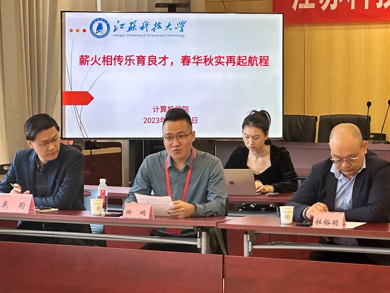 10月26日,正值江苏科技大学办学90周年校庆日,计算机学院众多校友以返校和线上多种形式表达了爱校爱母院的心情。下午2点,在学院楼320会议室举办了计算机学院高质量发展研讨会,听取校友意见与建议,共谋发展,共谱新篇。格尔软件有限公司董事长杨文山、中国船舶集团综合管理部原主任程康、河海大学教授博士生导师吴中、南京理工大学教授博士生导师於东军、扬州大学信息工程学院(人工智能学院)院长孙小兵、江苏省司法警官高等职业学校司法信息技术专业科兼安全防范专业科主任戴昀、南京三万物联网科技有限公司事业部总经理杜裕明、南京贝贝帮教育咨询有限公司创始人兼CEO徐鹏等杰出校友,计算机学院院领导、系部主任、党支部书记共30余人参与会议,会议由计算机学院院长杨习贝主持。