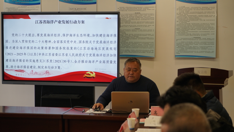 本次学习的内容主要包括江苏省海洋产业发展行动方案、学校第四次党代会精神。计算机学院党委书记高尚领学,高尚首先带领大家学习了《江苏省海洋产业发展行动方案》,重点解读了该方案的政策背景、政策目标、重点任务以及实施保证,并引导全体成员积极思考我校在海洋产业发展中面临的机遇,如何找准目标和方向,主动作为,力争抢在前面、走在前面。高尚还带领全体成员共同学习领会了《锚定特色一流服务国家战略奋力开创高水平大学建设新局面——在中国共产党江苏科技大学第四次党员代表大会上的报告》,重点回顾了学校过去五年取得的突出成绩,分析了学校开启全面建设高水平大学新征程面临的形势机遇、发展目标、任务举措以及持续推进新时代党的建设新的伟大工程目标任务。