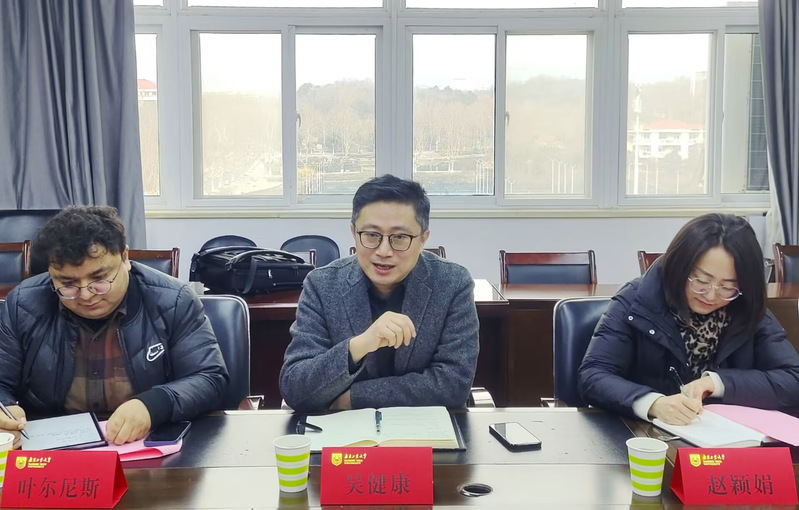 计算机学院党委副书记吴健康简要介绍了我校我院的基本情况,重点围绕我院学生工作的总体布局、职责分工、特色亮点等方面展开分享。