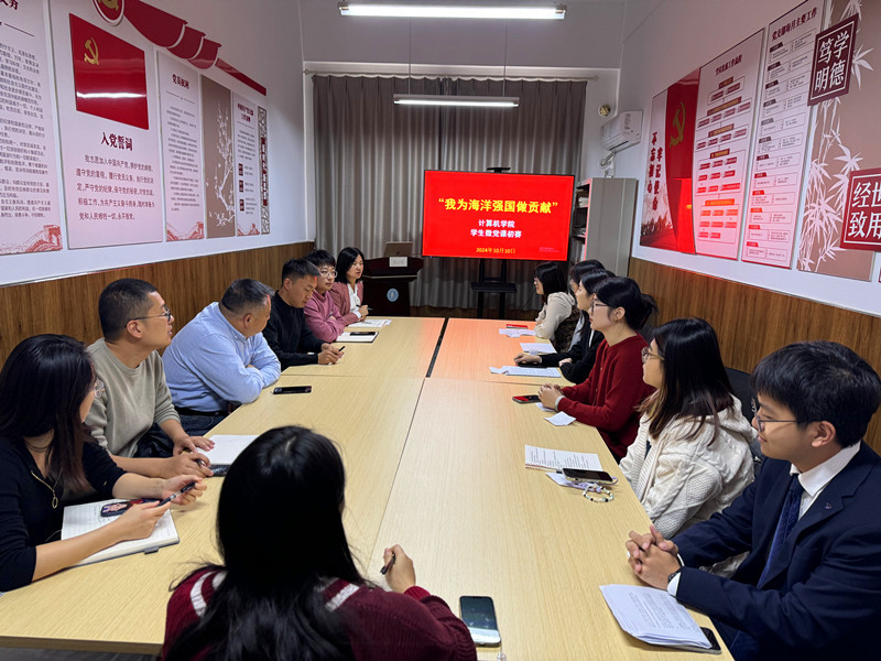 2024年10月10日中午,计算机学院党委在316党建活动室成功举办了“我为海洋强国做贡献”学生微党课初赛。此次比赛旨在引导学生党员深刻领会海洋强国战略的重大意义,鼓励同学们为海洋强国建设贡献青春力量。计算机学院党委书记高尚及六位学生党支部书记参加了此次活动。