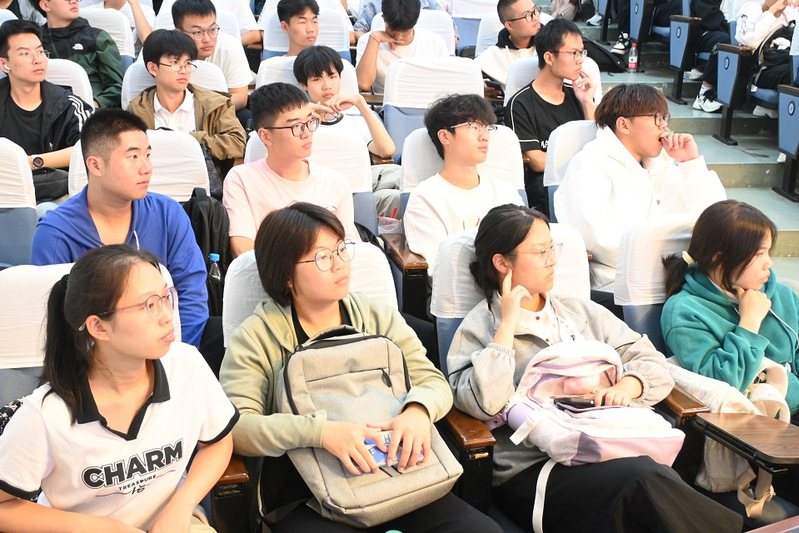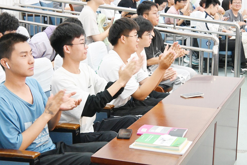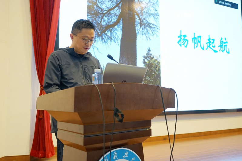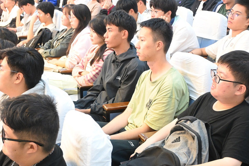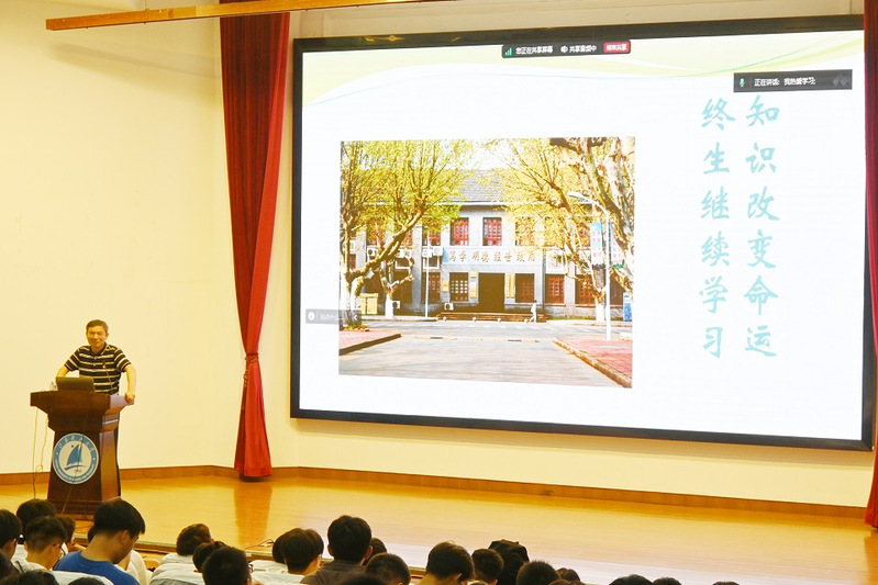 在介绍完优秀校友的辉煌成就后,生教授将话题引入了此次教育的更深层次——理想信念和爱校荣校。他强调理想信念和爱校荣校对每一位学子的重要性,要维护学校声誉,敬爱老师,珍重同学友情,以在江苏科技大学学习生活为荣,希望同学们能够从校友们的故事中汲取力量,树立正确的理想信念,培养深厚的爱校荣校情感。生教授进一步强调,这种情感不应局限于学校,爱家、爱校、爱祖国是紧密相连的。同学们应从对家庭的热爱出发,将这种情感延伸到对学校的热爱,进而升华到对祖国的热爱,树立正确的理想信念,培养深厚的家国情怀,为自己的人生赋予更崇高的意义和价值。
