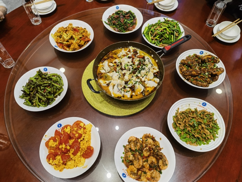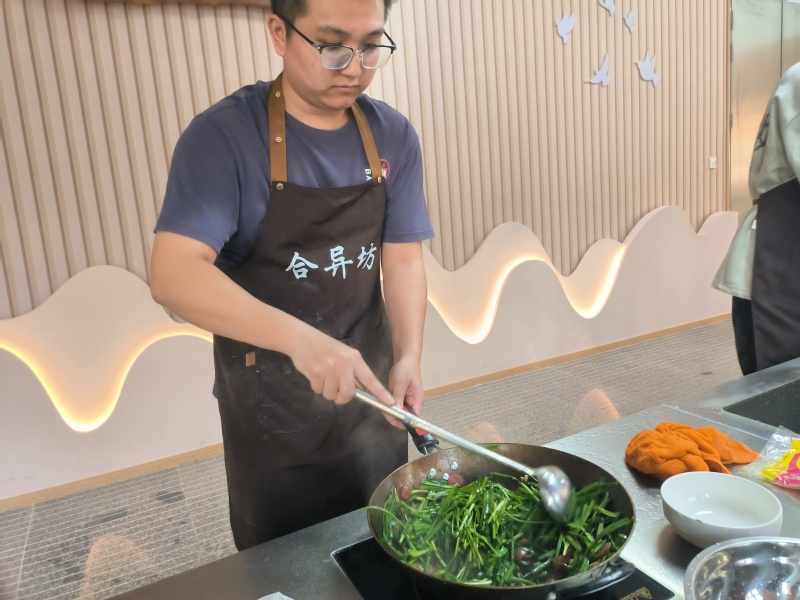 在厨师的指导下,成员们更加自信地投入到烹饪过程中。面对一些复杂的菜肴,如酸菜鱼等,厨师更是手把手教学,每一个步骤都详细讲解,确保每位参与者都能掌握其中的关键点。这种寓教于乐的方式不仅让参与者学到了实际的技能,也增加了活动的趣味性。