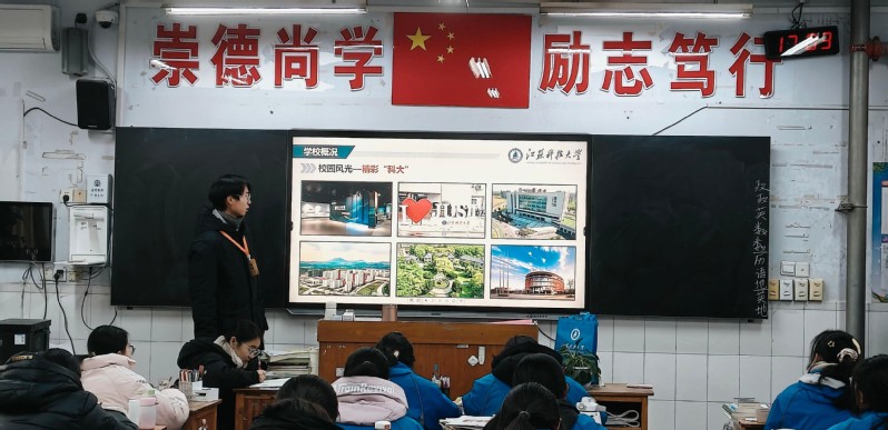 紧接着,通过播放宣传视频,实践团队成员向学弟学妹们全面介绍了江苏科技大学特色专业,如船舶,海洋,蚕桑方面的情况,让学弟学妹们对江科大的特色专业有了更深入的了解和认识。同时,他们还现场解答了学弟学妹们关于大学专业选择、报考流程、就业前景等方面的问题,消除了他们的疑虑和困惑。