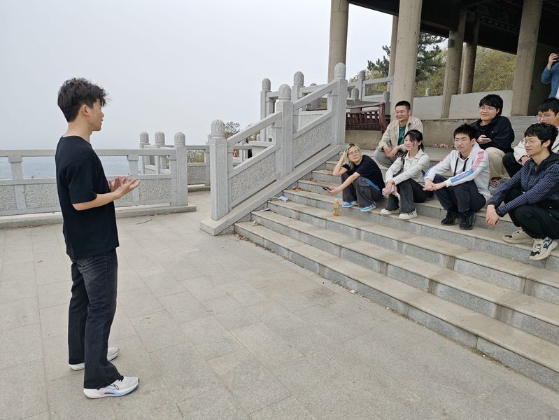 活动核心聚焦山顶“英雄事迹故事会”,大家围坐福因阁外,以“一人一故事”形式讲述革命先辈的壮烈篇章。一名学生声情并茂地诵读了抗日英雄赵一曼的绝笔信:“母亲不用千言万语来教育你,就用实行来教育你……”现场学子无不动容,多名参与者主动补充杨靖宇雪原抗战等其他英雄事迹。