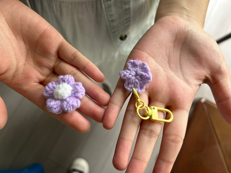 活动现场,舒缓的音乐与五彩斑斓的毛线相映成趣。同学们手中的钩针在毛线间灵活穿梭,有的初次尝试,虽动作生疏却乐在其中;有的技艺娴熟,快速完成精致的帽子和小花;还有的将创意融入作品,赋予钩织独特的艺术魅力。每一针一线都倾注了专注与耐心,大家在编织中体会到了宁静与成就感。