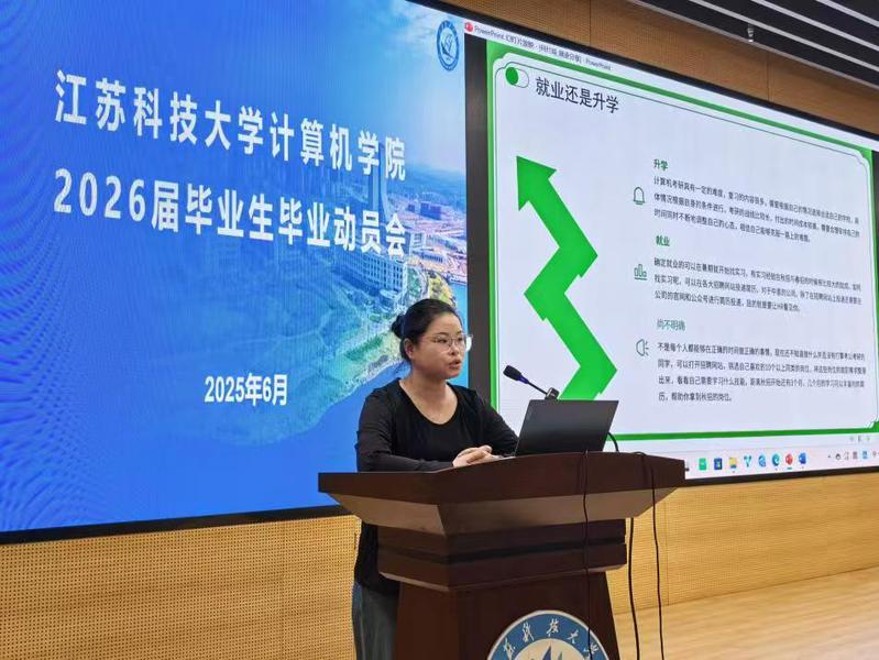 动员会伊始,计算机学院院长杨习贝教授作动员讲话。杨院长深入分析了当前计算机行业的就业形势,指出随着人工智能、大数据等技术的快速发展,行业对人才的要求越来越高。他勉励同学们,在接下来的关键一年里,既要仰望星空,也要脚踏实地,就业要主动出击,通过实习实训积累实战经验,考研要系统复习,特别是重视408专业课的深度掌握,无论选择就业还是考研,都要有明确的目标和规划,不能盲目跟风,要根据自己的兴趣和能力做出最适合自己的选择。